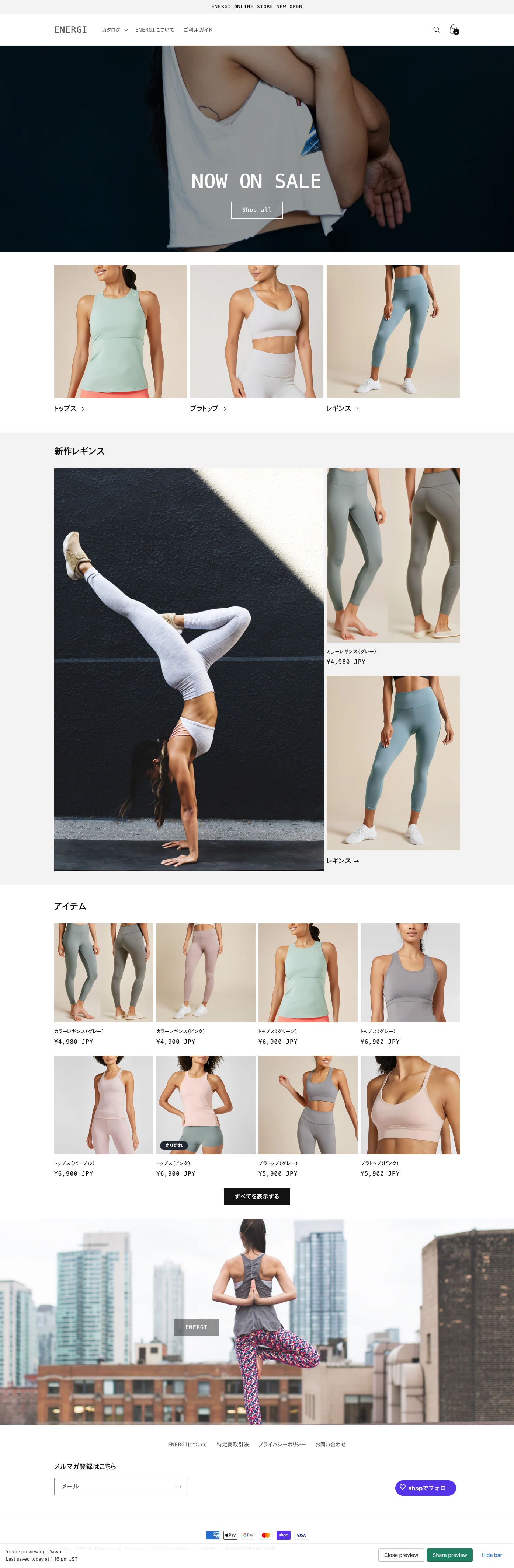 このウェブサイトのテーマは、『ENERGEで、もっと自分らしく輝く』です。お客様がフィットネスアイテムを着用することで、自信に満ち溢れ、自分らしいスタイルを確立できることをイメージしています。