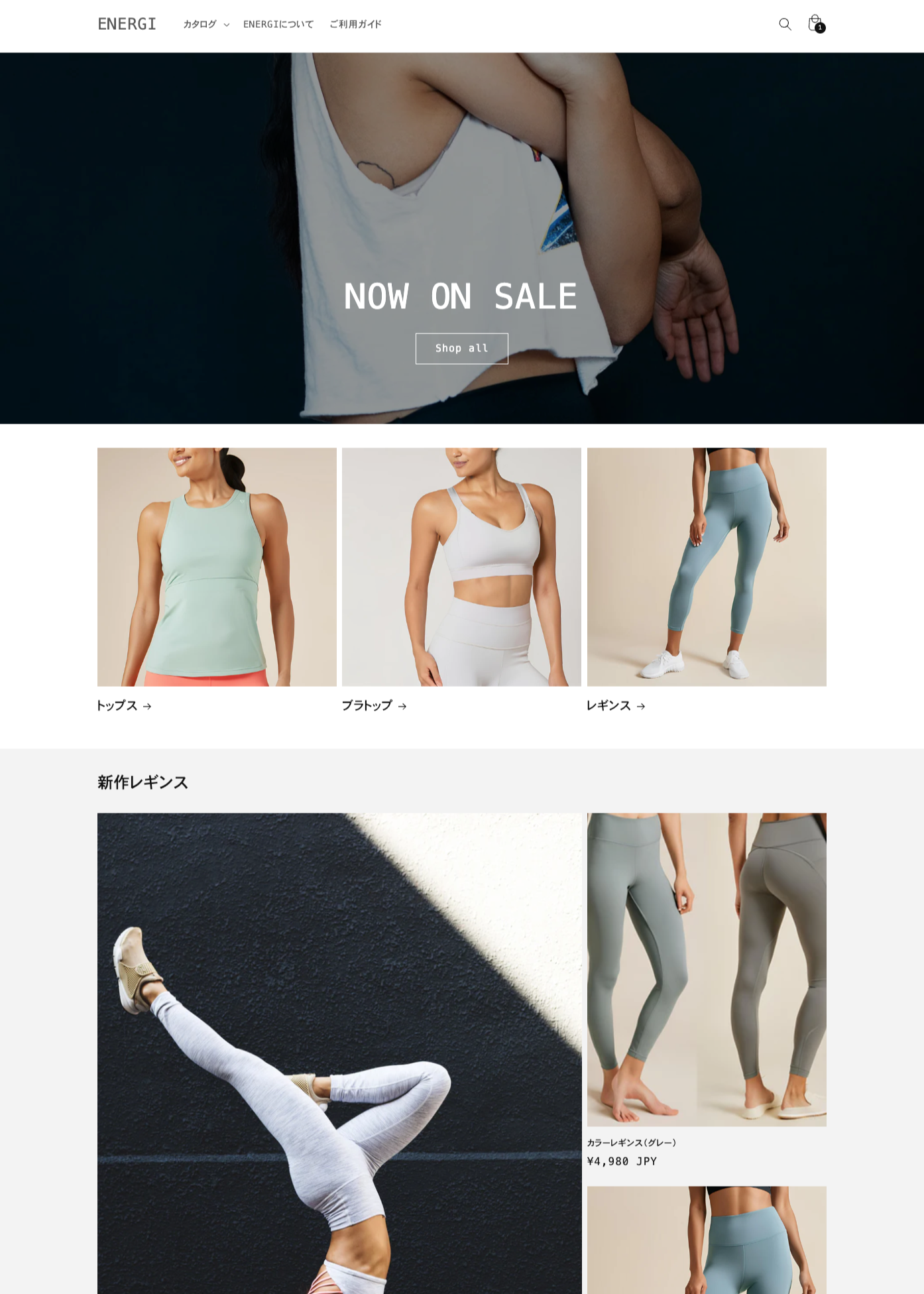 ENERGEのお客様の審美眼に響くようシンプルなデザインを意識しました。大きく表示された商品の画像は、レギンスの素材感やシルエットをリアルに伝え、お客様に実際に手に取ったような感覚を与えます。